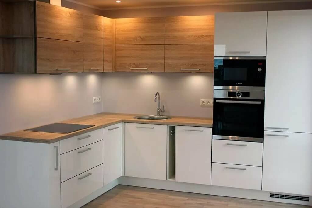 sovremennyj uglovoj belyj kuhonnyj garnitur bez ruchek g yuzhno sahalinsk